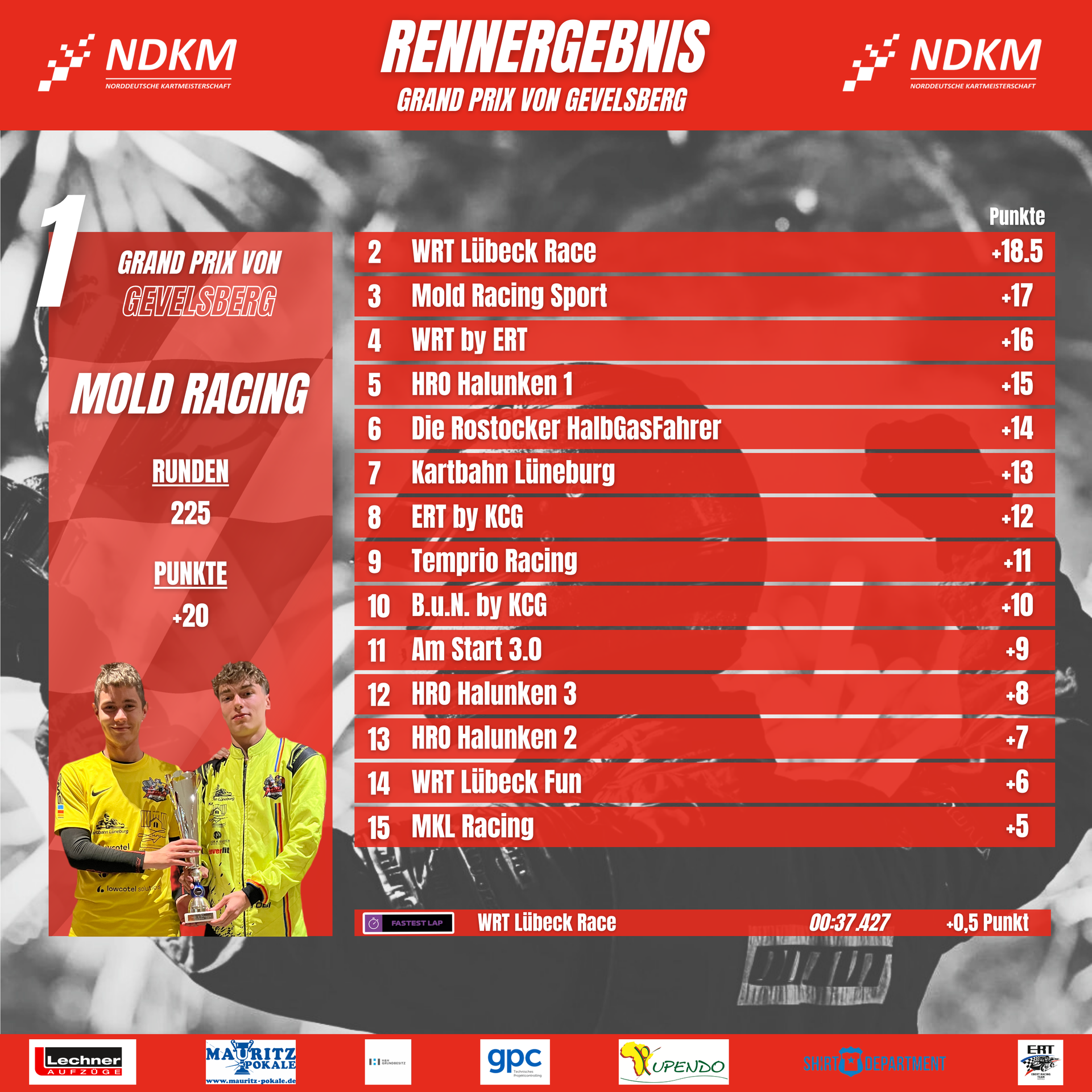 Beide Mold-Teams standen am Ende auf dem Podium! Die Jungs fuhren ein fehlerfreies, starkes Rennen. Die Favoriten und erfahrenen Teams wie WRT by ERT und Kartbahn Lüneburg konnten diesmal bei der Pace nicht ganz mithalten.